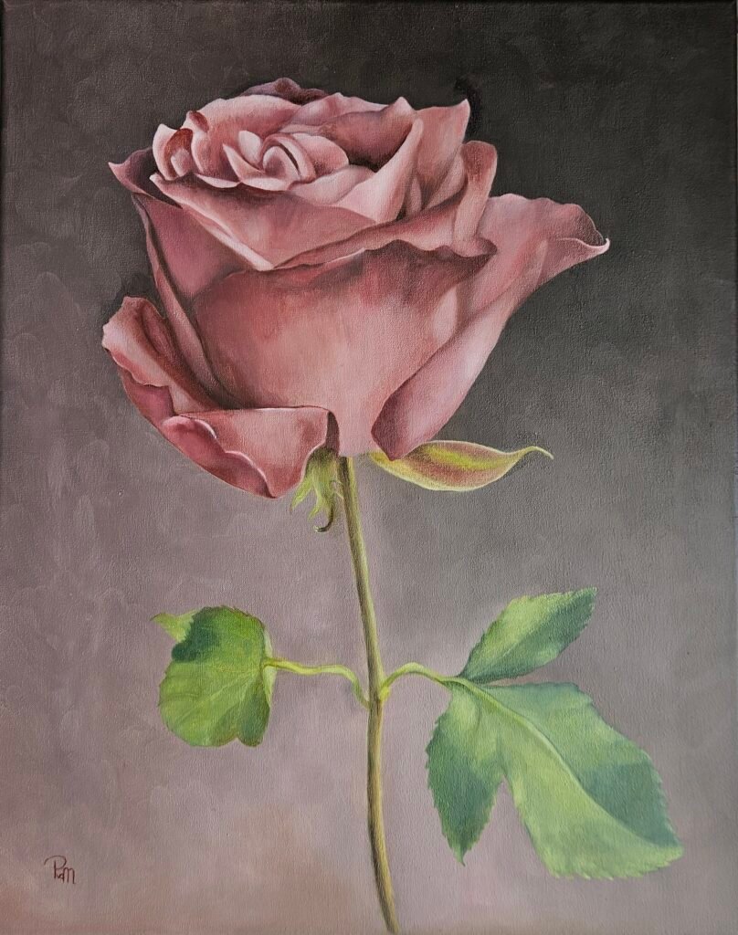 Roze roos | Doek 40x50 cm | olieverf