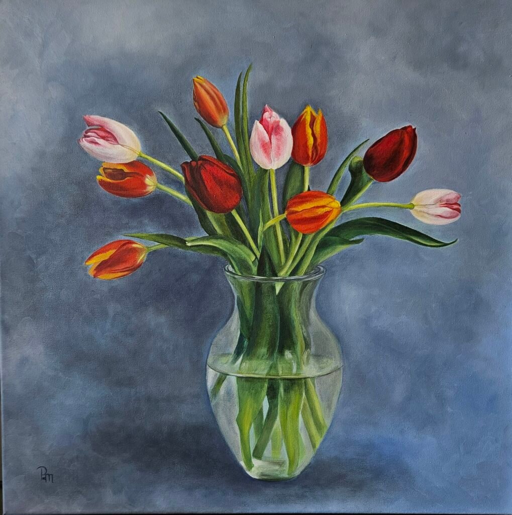 Gekleurde tulpen | Doek 60x60 cm | olieverf | 2024 | € 495,00