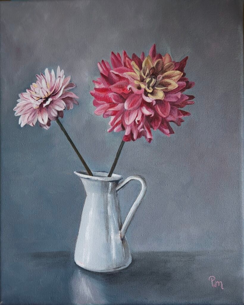 Dahlia's | Doek 24x30 cm | olieverf | 2025 | €195,00